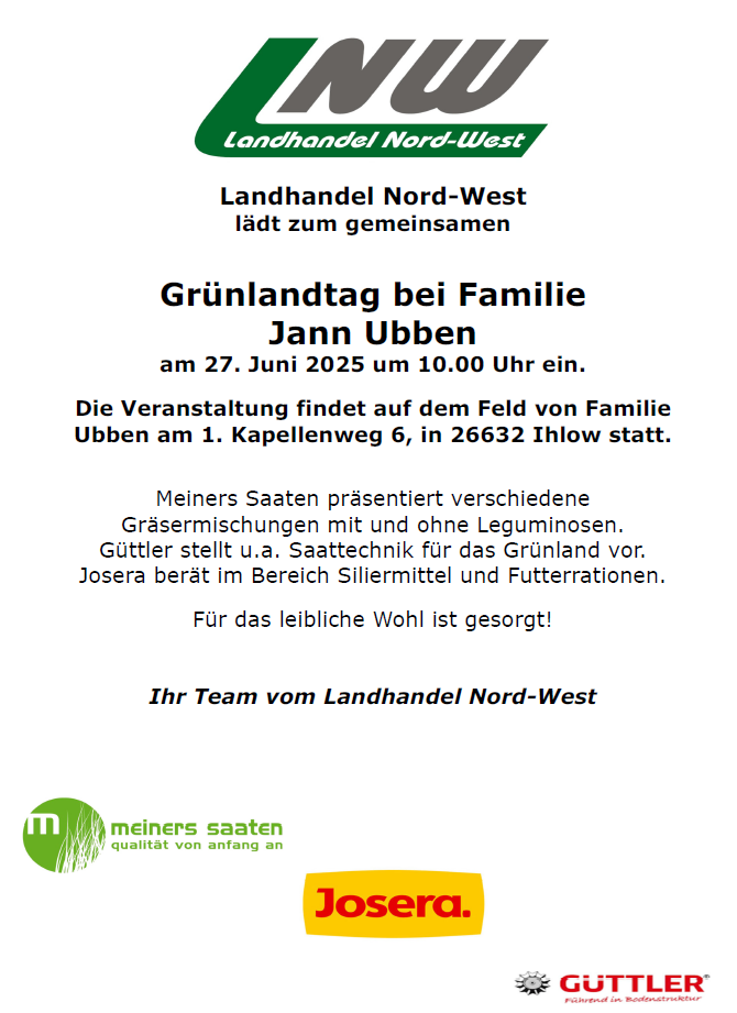 Am 27. Juni 2025 um 10.00 Uhr ein findet auf dem Hof von Landwirt Jan Ubben in Ihlow unser gemeinsamer Grünlandtag statt. Sehen Sie dieses gerne als Einladung.